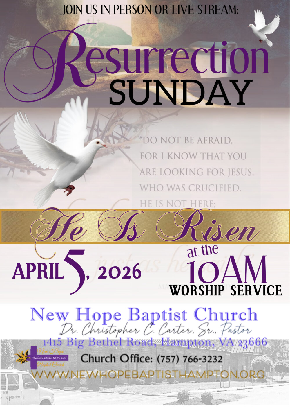 We extend Christ to you - if you accept Jesus as your personal Lord and Savior, please call us 757 766-3232.