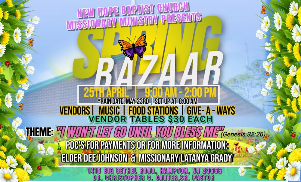 Join us for our Spring Bazaar as we enjoy vendors, music, food, fun, and fellowship. If you are inte …